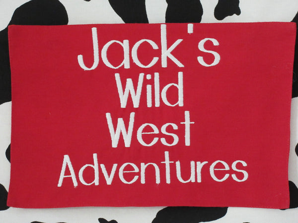 The button-on name plaque is $9.95, and monogramming is $8.50 per word. We do not count symbols such as "&" as words, these are free!